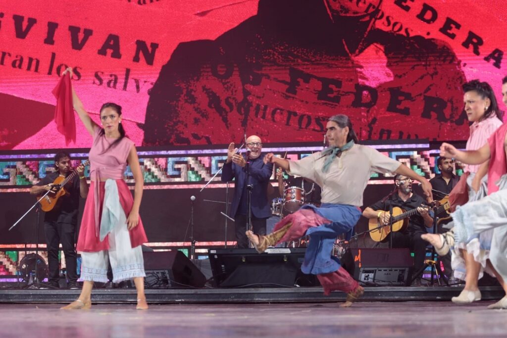 El espectáculo reunió a un cuerpo de danza integrado por 42 bailarinas y bailarines, acompañados por una banda de diez músicos, con la voz principal de Juan Carlos Baglietto como figura destacada.